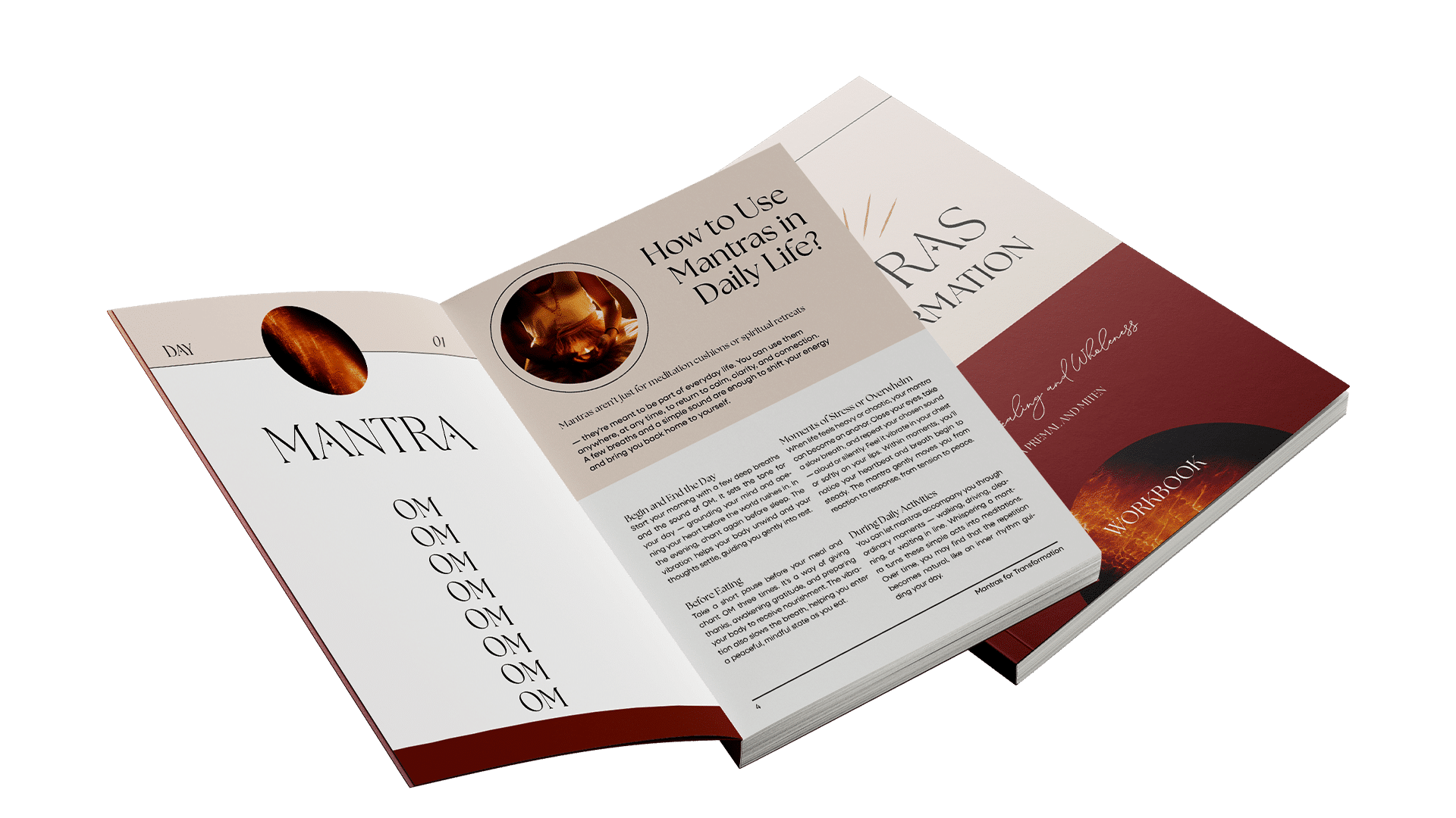 Guia de Referência Completo com todos os mantras em sânscrito, transliteração e tradução, além de espaço para as tuas reflexões pessoais.
